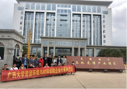 2021年4月12日,由学院党委副书记吴达慧带队,资源环境与材料学院及机械工程学院师生代表共51人来到玉林市龙潭产业园进行参观交流,期间师生们与产业园领导、企业代表就共同关心的问题进行了深入的探讨。