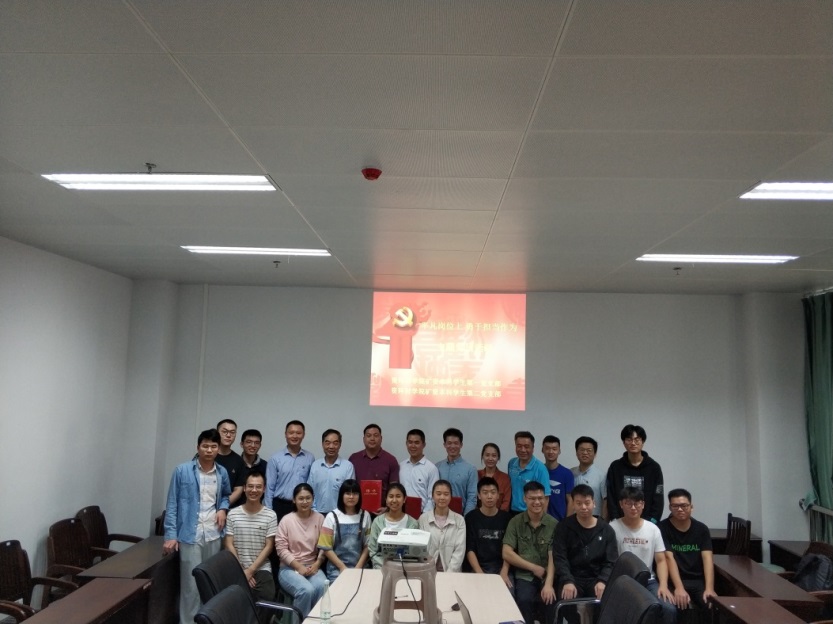2020年11月21日,矿物资源工程专业2005级国防生校友李敏、苏光林、谭泽模和矿物资源工程专业2007级国防生校友李其玖等四位校友兼职辅导员回到母校与矿资本科生第一、第二党支部开展主题党日活动。