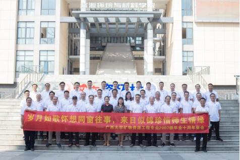 10月5日,资源环境与材料学院矿物资源工程2007级校友回到母校,举办主题为“岁月如歌怀想同窗往事,来日似锦珍惜师生情缘”毕业十周年聚会活动,校友们与老师欢聚一堂,分享工作和生活感悟,共叙师生情、同窗谊,感谢母校师长的谆谆教诲,校友们还共游校园,重温校园美好时光。