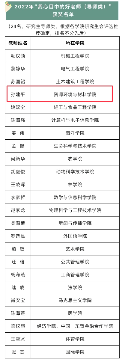 孙建平老师获评2022年广西大学“我心目中的好老师”(导师类)