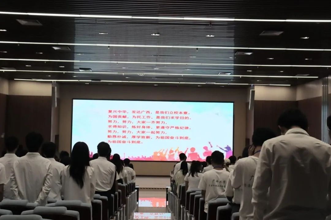 最后,学生会主席团成员覃彬烘带领全体团学组织成员宣誓,在全体成员合唱校歌后,我院团学组织新一届全体成员大会圆满结束。