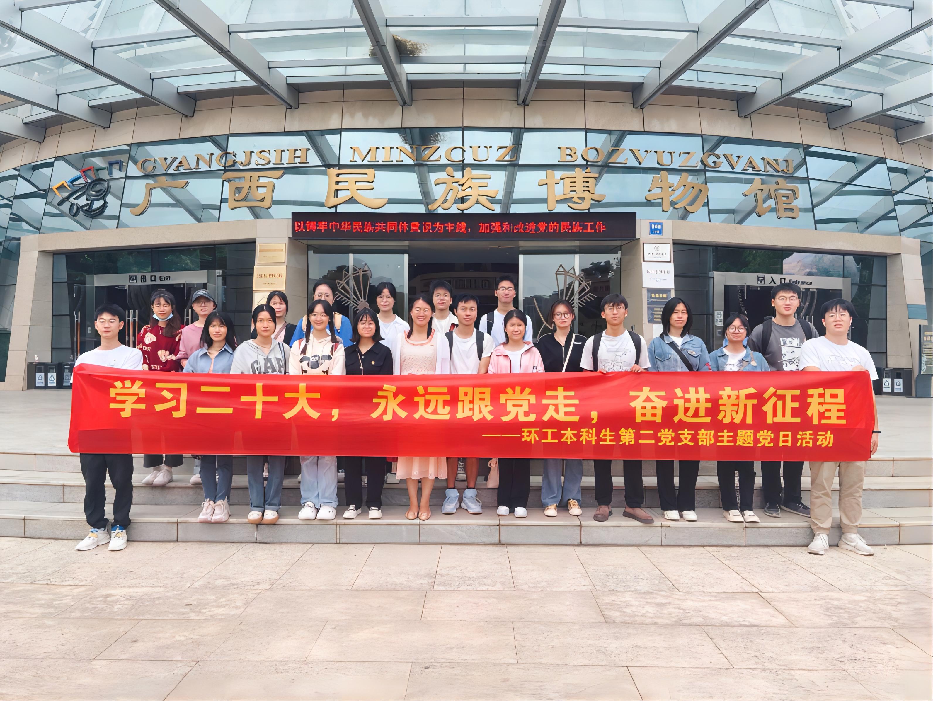为深入学习贯彻党的二十大精神,提高党员思想政治修养,11月19日,我院环工本科生第二党支部前往广西民族博物馆开展“学习党的二十大,永远跟党走,奋进新征程”主题党日活动。