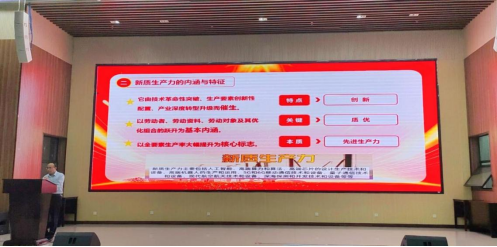 沈大强书记强调,发展新质生产力是推动高质量发展的内在要求和重要着力点,必须继续做好创新这篇大文章,推动新质生产力加快发展;要坚持“创新、协调、绿色、开放、共享”新发展理念,加快实现高水平科技自立自强,使原创性、颠覆性科技创新成果竞相涌现,培育发展新质生产力的新动能。