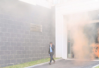 在火灾报警响起后,各演练应急组各就各位,参与演练人员在现场负责人陈庆发副院长的指挥下迅速掩住口鼻,低姿、弯腰,从规定的消防疏散通道快速有序撤离到安全场地。演练结束后,保卫处专家作了综合点评。学院党委书记沈大强对本次演练总结时对学院消防安全工作提出了“做实做细日常管理,人人有责防患于未然”的工作要求。