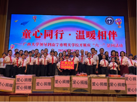5月30日下午,在“六一”国际儿童节到来之际,我院联合统战机关党委办公室党支部、民主党派统战团体、国有资产与实验室管理处到南宁市明天学校开展“童心同行,温暖相伴”党建+工会活动。校党委常委、校长助理、党委统战部部长、国有资产与实验室管理处处长姚作芳出席活动。
