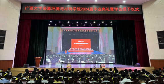 “复兴中华,发达广西……勤恳朴诚,厚学致新,为祖国奋斗到底!”毕业典礼在激昂的校歌声中圆满落下帷幕。毕业不是青春的结束,而是崭新的开场。再次祝贺资源环境与材料学院2024届毕业生们:毕业快乐,前程似锦!