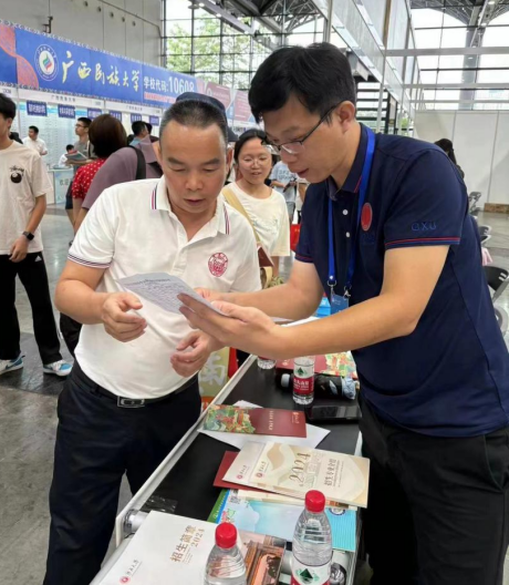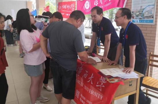 招生宣传组成员与考生、家长面对面交流时,详细介绍了广西大学的院校性质、地理位置、学科特色、人才培养、就业前景等情况,结合个人兴趣和专业发展等诸多角度给予志愿填报建议。每个宣传现场都是人声鼎沸,成为考生和家长重要的关心关注点,积极发放广西大学招生简章、招生宣传折页等宣传资料。宣传人员线上线下都耐心、细致解答各类咨询问题,其敬业的精神、专业的解答和暖心的指导得到了考生和家长的广泛赞许。