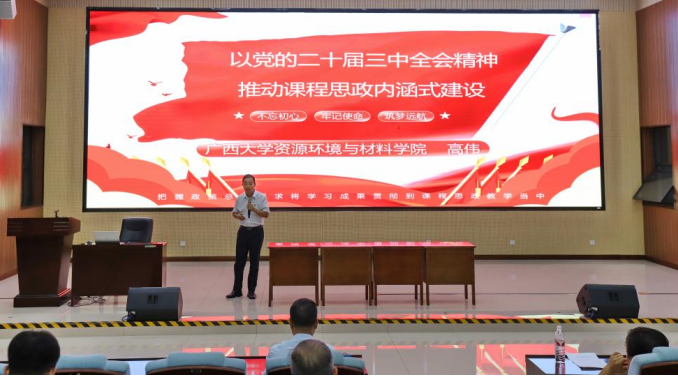 广西高校课程思政示范课程《木与人类文明》项目负责人高伟副教授对课程思政建设进行了专题分享,通过《以党的二十届三中全会精神 推动课程思政内涵式建设》的专题学习,剖析思政融入教学的经典案例,从“事、理、德、人”四个维度分享课程思政实施心得。