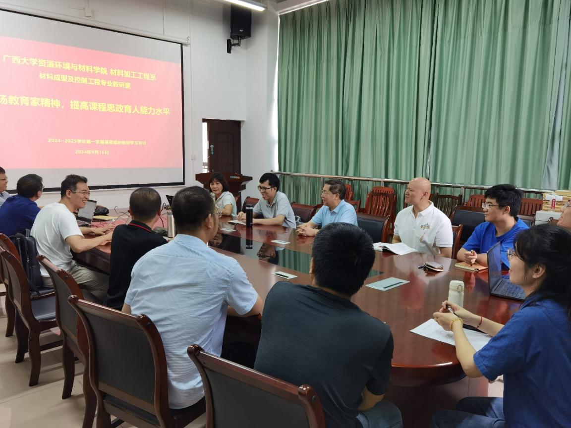 为深入挖掘课程思政内涵,推动专业课程与思政教育的协同育人机制,我院材料加工工程系于9月3日和9月10日下午组织了两次专题研讨会,主题分别为“深化课程思政内涵,创新融合路径”和“挖掘思政元素,推进课程育人”。学校督导庞祖高老师出席并指导,全系教职工参加。