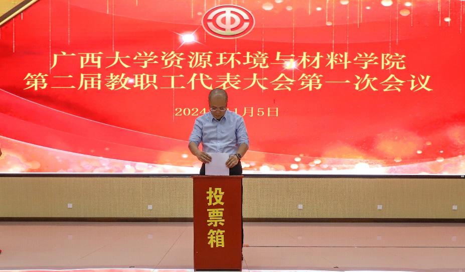 大会在嘹亮的国歌声中开幕。代表们听取、审议并表决通过了《广西大学资源环境与材料学院教职工代表大会制度》,同意了因人事安排变动的分工会负责人调整方案,增补选举刘易同志担任学院分工会主席。会上,学院副院长刘易对2024年学院奖励性绩效分配情况作了说明,对做好年度绩效总结、统计工作进行布置。