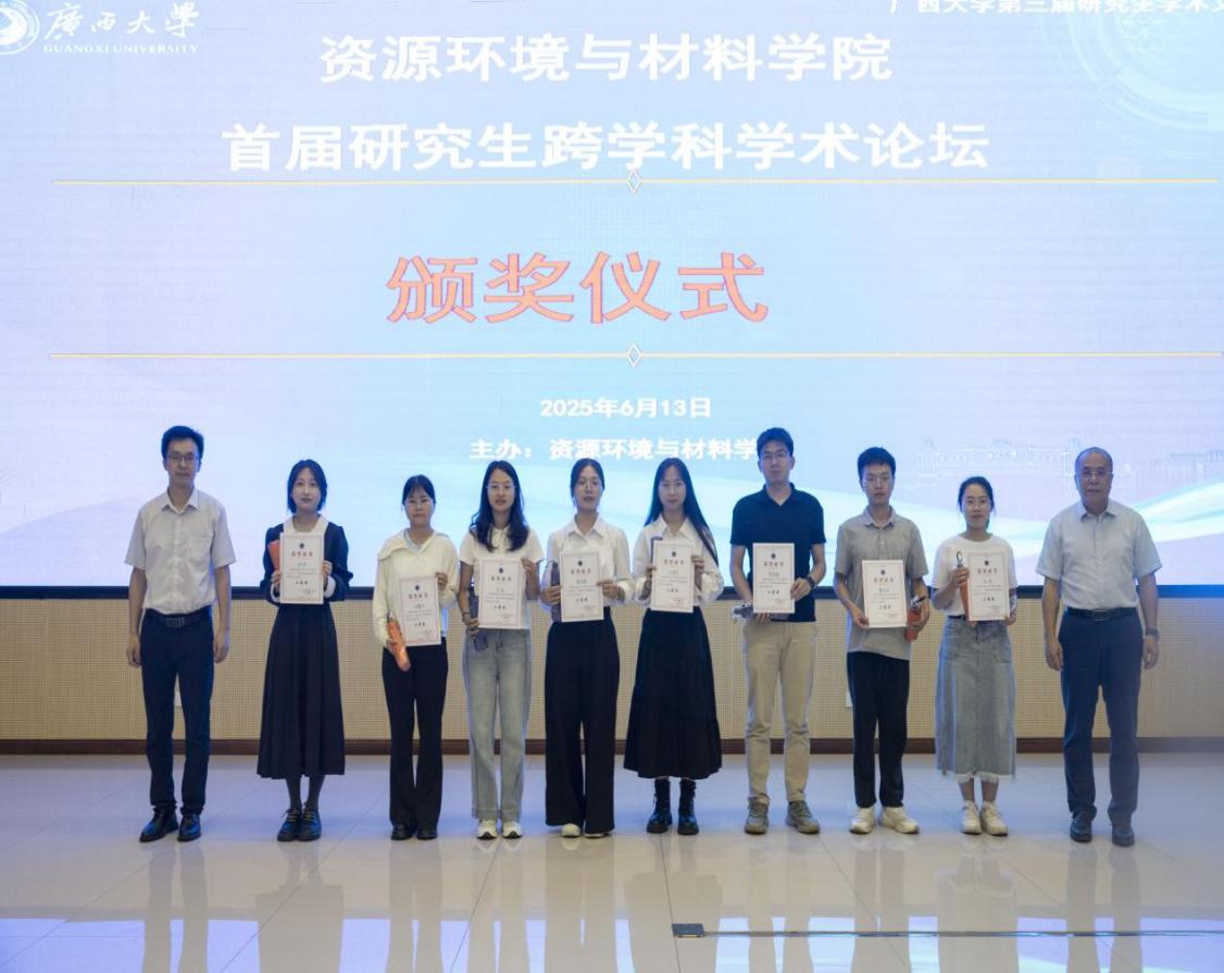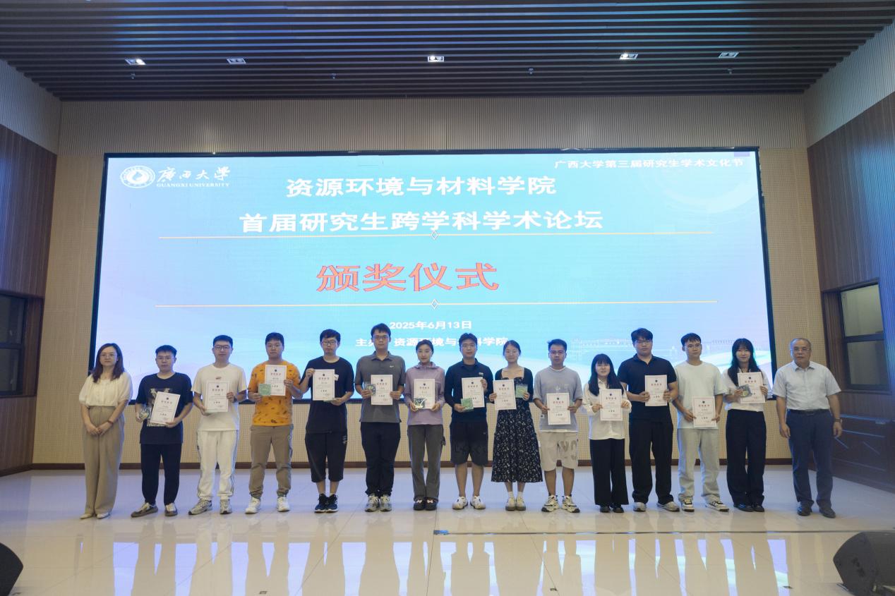 6月13日,资源环境与材料学院首届跨学科学术论坛在资环材大楼123报告厅隆重召开。本次论坛的主题是“交叉创变,赋能未来”,目的是推动学科交叉融合,及营造浓厚学术氛围,以及搭建高校研究生学术交流平台。论坛特邀清华大学、中南大学、华南理工大学、西北工业大学、华东理工大学、中南林业科技大学、桂林理工大学等国内知名高校的13名校外知名学者和硕博士研究生共同参与。本次论坛是在“广西大学第三届研究生学术文化节”总体框架下,由广西大学研究生院、校团委、学生工作部(处)联合主办,我院承办的盛会。