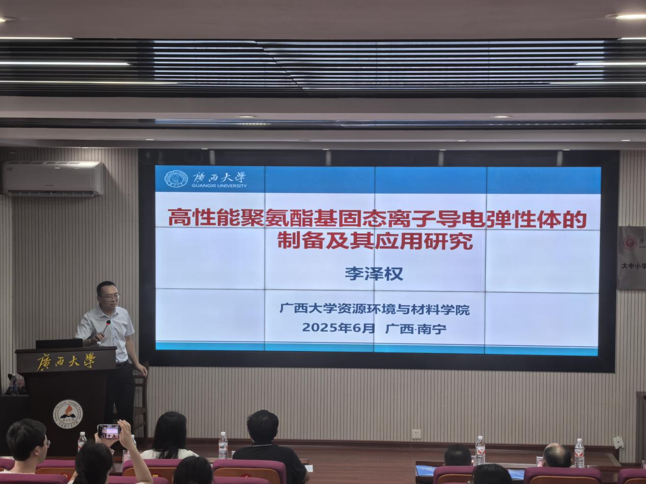 我院李泽权助理教授作题为《高性能聚氨酯基固态离子导电弹性体的制备及其应用研究》的报告
