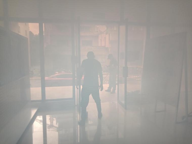 在模拟火灾逃生环节中,火灾报警响起后,各演练应急组各就各位,参与演练人员在现场负责人指挥下迅速掩住口鼻,低姿、弯腰,从就近的消防疏散通道快速有序撤离到安全场地。