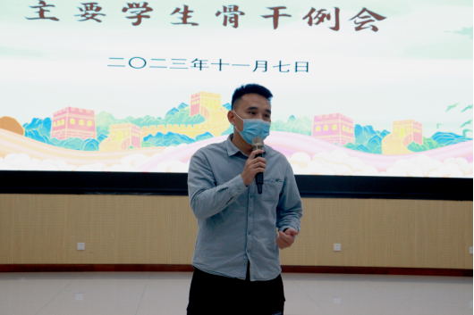 为提升学生干部的工作能力与效率,进一步部署后期工作,11月7日下午,我院在123报告厅召开2023年秋季学期第四次主要学生骨干例会。学院团委书记陈宏,学工组辅导员罗盛柳、韦长喜出席会议,院团委各学生组织主要干部以及各班班长、团支书参加本次例会。