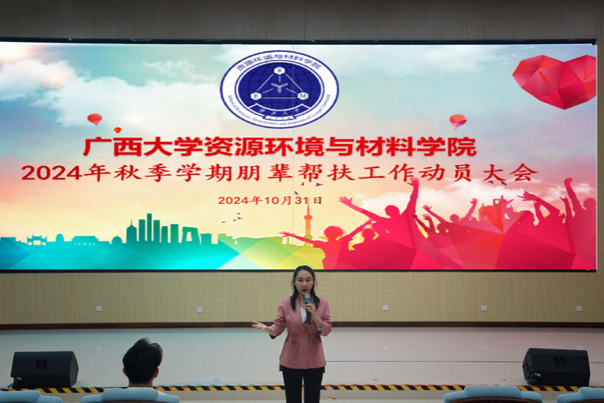 为解决学业困难,提高学习主动性和积极性,10月31日,我院2024年秋季学期朋辈帮扶工作动员大会在院123报告厅召开。学院党委副书记、纪委书记吴达慧,学工组辅导员罗盛柳老师出席会议,参加帮扶计划的同学参加动员会。