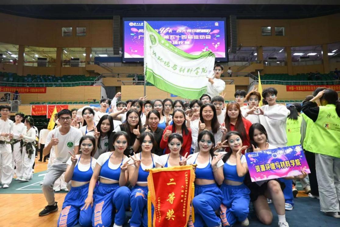 11月2日,广西大学第五十四届运动会啦啦操比赛在西校园综合体育馆隆重举行。本次比赛主题为“风雨同舟96载,西大有你更精彩”,来自全校24个学院的比赛队伍共聚一堂,为现场评委、观众带来了一场充满激情与活力的视觉盛宴。 比赛中,我院啦啦操队队员身穿统一服装,配合着动感十足的音乐,用整齐的动作、自信的表情向评委展示了青春活力与激情,赢得观众们热烈的掌声与欢呼。最终,我院啦啦操队荣获大学院组二等奖,唐喆同学荣获“最佳运动员奖”。 编辑|周大淇 审核|吴达慧