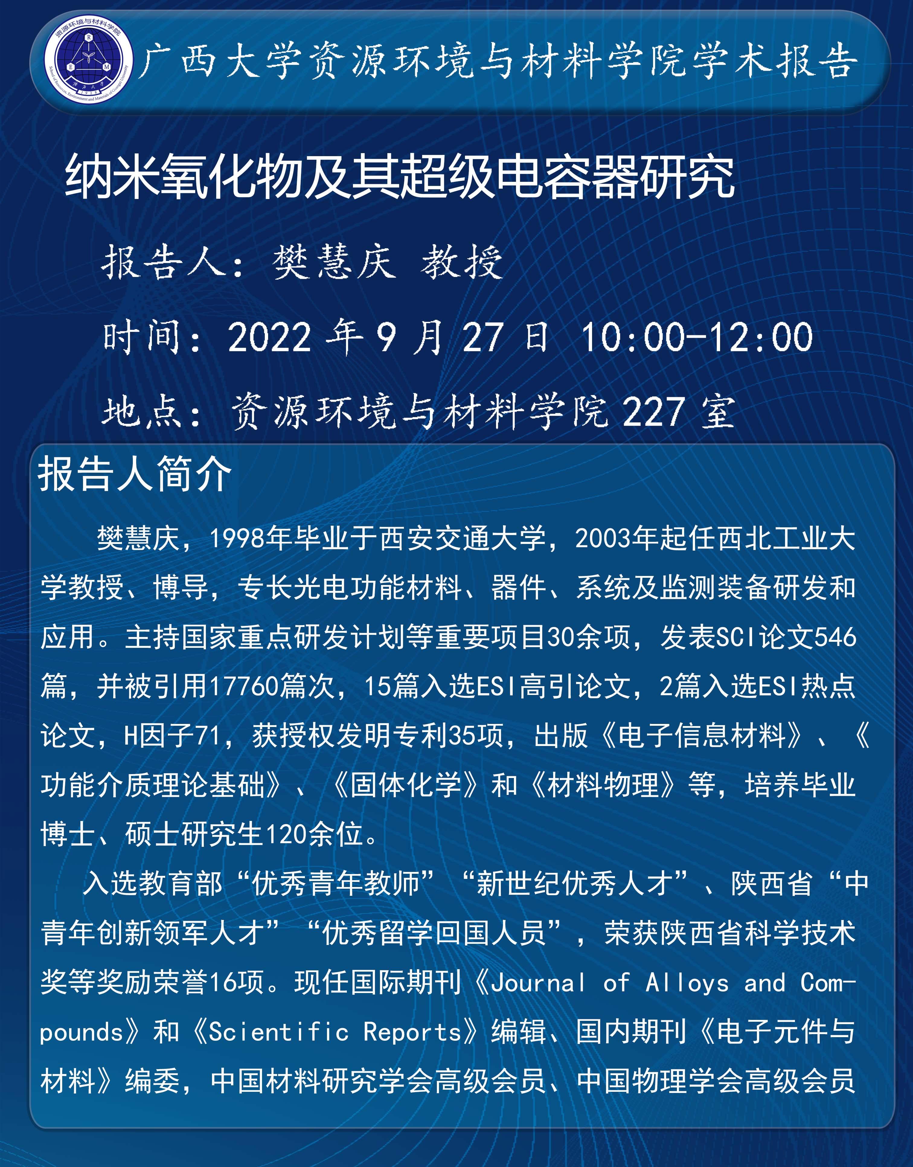 下一篇:资源环境与材料学院学术报告:航空航天用大规格高性能铝合金材料研制及应用