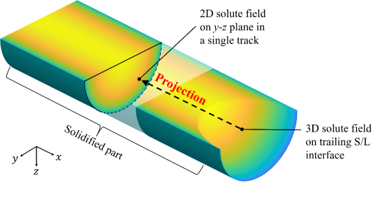 近日,我院青年教师蒋奥克团队与美国普渡大学王晓明教授合作,通过结合三维罗森塔尔方程及LKT-BCT快速枝晶生长理论,提出了一种新型、简便的激光粉末床熔融铝硅合金溶质演化的预测模型。该模型能够快速预测铝硅合金增材制造中,单个熔池范围内溶质溶解度的分布情况,同时能够揭示溶质溶解度随熔池位置、激光参数及原料化学成分变化的一般规律。该研究不仅为当前增材制造铝硅合金的降低基体溶质过饱和度及改善热导率的问题提供重要的理论基础,也为其他合金体系在相似加工条件下的溶质演化问题提供研究思路,是省部共建特色金属材料与组合结构全寿命安全国家重点实验室(方向二)新型铝合金及其复合材料的设计加工与智能制造最新研究成果之一。