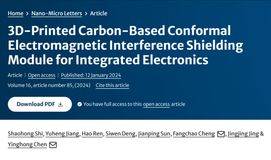 近期,我院程芳超老师团队在碳基电磁屏蔽模组的3D打印先进制造领域取得重要进展,研究成果以“3D-Printed Carbon-Based Conformal Electromagnetic Interference Shielding Module for Integrated Electronics”为题,发表在SCI收录期刊《Nano-Micro Letters》(中科院1区,IF =26.6)上。论文通讯作者为广西大学程芳超副教授和四川大学陈英红教授,第一作者为广西大学石绍宏助理教授,广西大学为第一完成单位。该研究工作得到国家自然科学基金项目(52303036)、广西自然科学基金项目(2020GXNSFAA297028)、四川省自然科学基金(2023NSFSC0986)等项目支持。