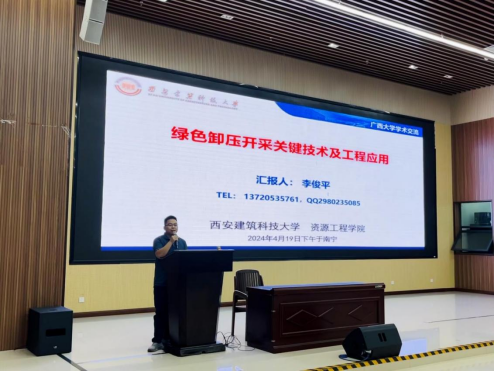 4月19日下午,西安建筑科技大学李俊平教授莅临我院进行学术交流,并作了题为《绿色卸压开采关键技术及工程应用》的学术报告。报告由王品老师主持,学院相关研究方向师生参与本次活动。