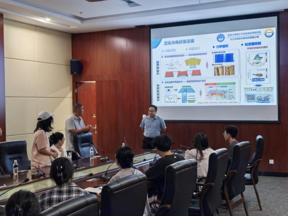 8月26日上午,南昌大学教授、九江柔烁光电技术总监胡笑添莅临我院进行学术及科技成果转化交流,并作了题为《柔性光伏器件及产业化探索》的学术报告。报告会由学院刘焘教授主持,我院材料物理与化学系师生参加交流活动。