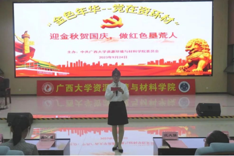 9月24日晚,我院在学院报告厅开展“金色年华·党在资环材——迎金秋贺国庆,做红色垦荒人”主题教育活动。学院党委书记沈大强,党委副书记、纪委书记吴达慧出席活动并讲话,广西革命纪念馆讲解员黄敏老师受邀讲述红色革命故事。