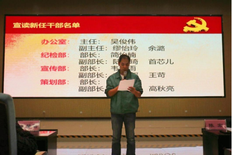 活动最后,陈宏老师强调要以习近平新时代中国特色社会主义思想为指导,增强“四个意识”、坚定“四个自信”,不断用党的理论武装头脑。新一届学生骨干要切实发挥好带头领导作用,为党组织培养和输送更多的优秀人才。