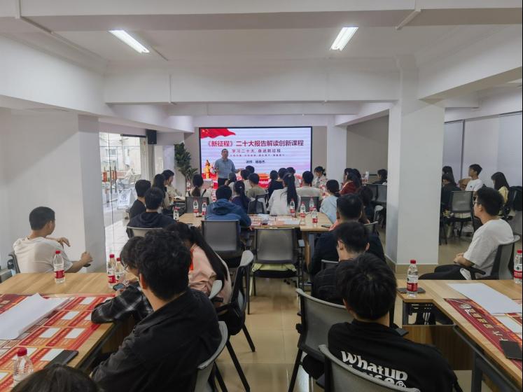11月21日,在国际注册沙盘演练师杨俊杰老师的主持下,我院党委在西校园“一站式”学生社区多功能活动室开展“学习党的二十大,奋进新征程”主题党日活动。环工本科生第一、第二党支部全体党员以及其他支部党员代表参加活动。
