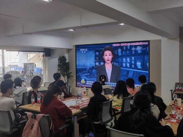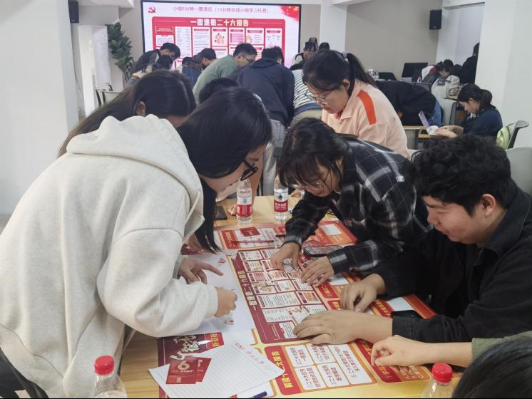 活动现场,党员同志们集体观看《新闻联播》,开展“一起拼图”“板块填写”“党史问答”等主题游戏,在参与体验和多向互动中回顾党和国家翻天覆地的变化,领悟党的二十大精神深刻内涵与时代价值。