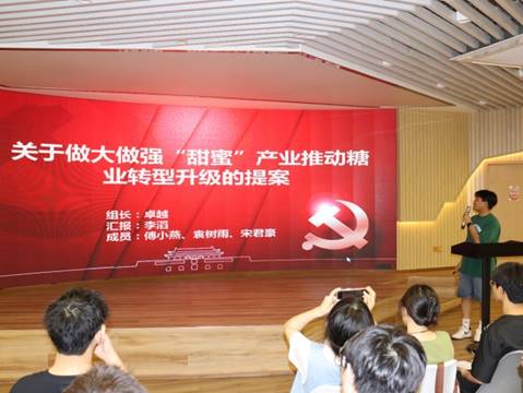 活动现场,同学结合学科专业背景,围绕经济发展、民生保障、生态文明、青少年成长发展等领域,以模拟两会提案形式提出政策建议,议题包括糖业转型升级、新能源汽车智能建设、铝产业绿色发展、区域边疆治理、青少年心理健康等。专题汇报后,评委嘉宾点评,小组间相互讨论交流,现场气氛热烈融洽。