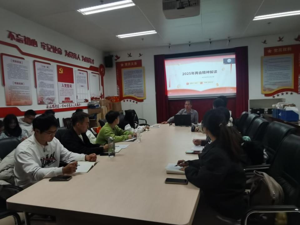 为深入学习贯彻全国两会精神,增强政治素养和责任意识,3月19日下午,我院材控本科生党支部开展“学两会精神·担时代使命”专题学习。 党支部书记陈宏以2025年全国两会热点议题为切入,重点呈现全民教育、人工智能、就业创业等领域议案提案,生动展现代表委员们立足基层、聚焦民生的履职实践。他强调要学深悟透,持续深化对两会精神的理解,主动关注国家政策动向;知行合一,在学习科研中追求卓越,在实习实践中锤炼本领;服务社会,积极参与志愿服务,以实际行动履行党员职责,发挥先锋模范作用。 在交流发言环节,党员同志结合自身学习和工作实际,分享对两会精神的理解与感悟,提出“以创新技术突破‘卡脖子’难题”“主动探索‘AI+学业’模式”“积极主动就业创业”“关注教育均衡化发展”等意见与建议。 一审一校:周大淇 二审二校: 陈 宏 三审三校:梁宇彬