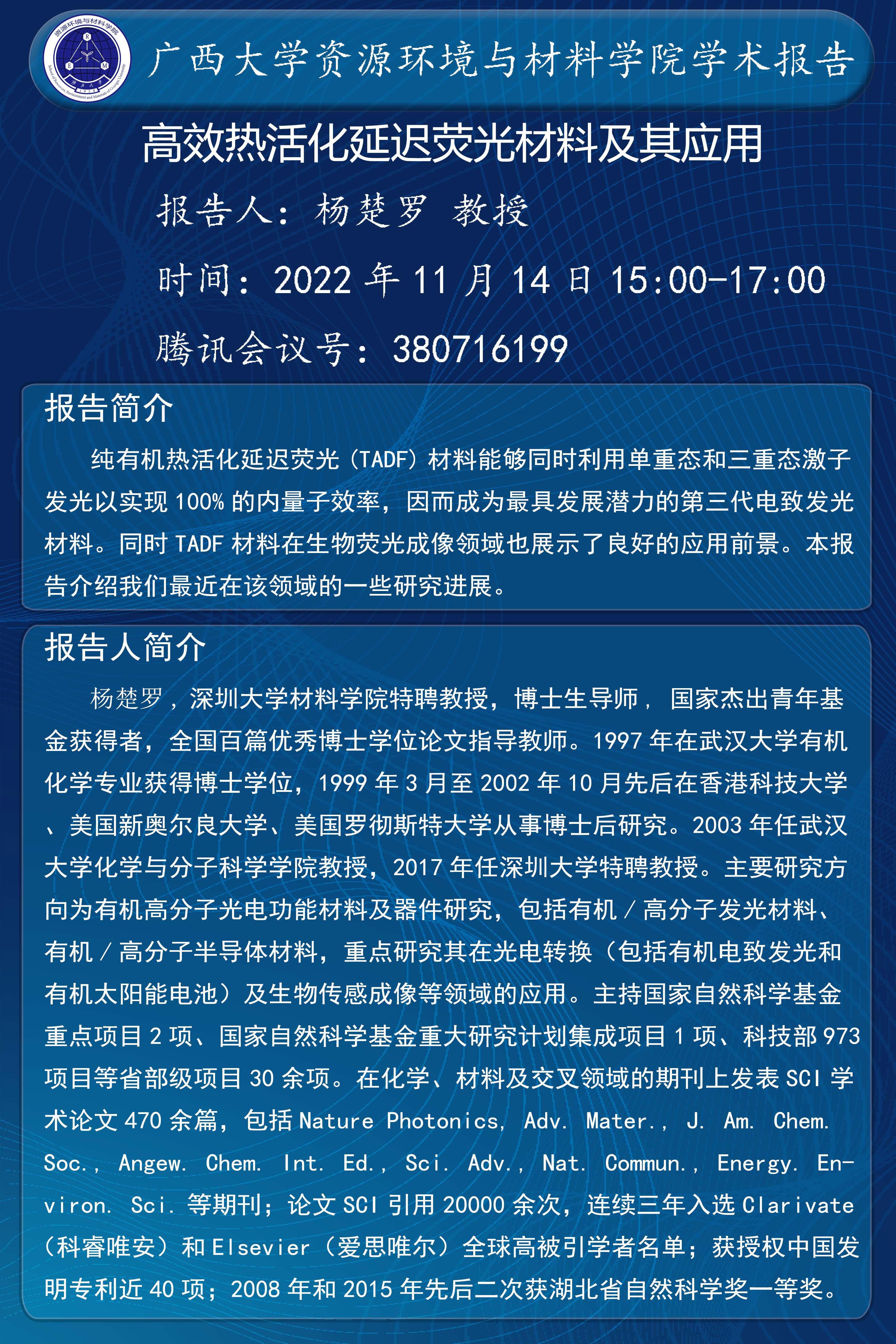 下一篇:资源环境与材料学院学术报告:高能量密度材料的构筑与应用